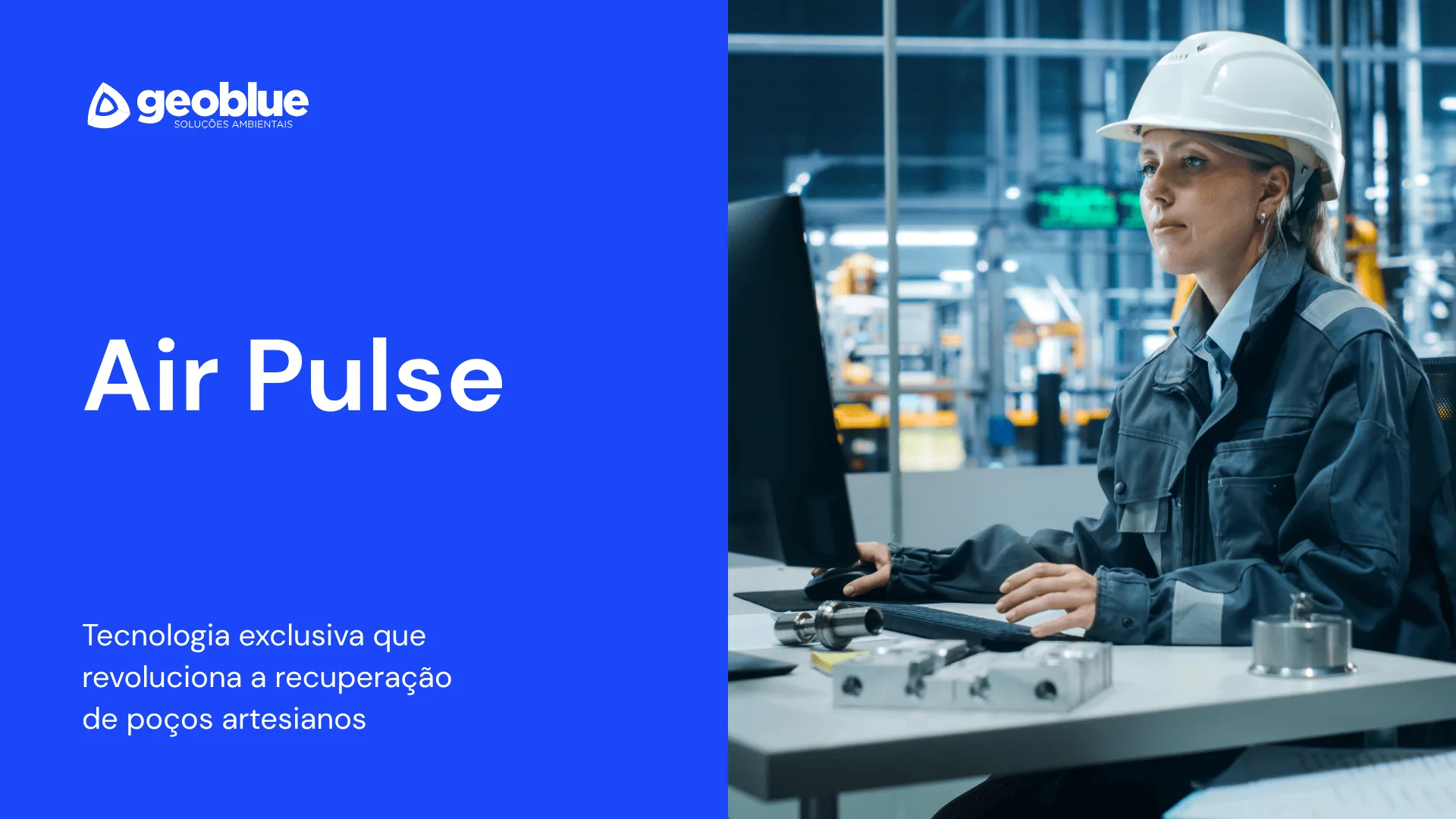 Air Pulse: tecnologia exclusiva da Geoblue que recupera poços artesianos em profundidade, sem químicos, com custo até 70% menor que uma perfuração, restaurando vazão, reduzindo energia e garantindo conformidade legal.